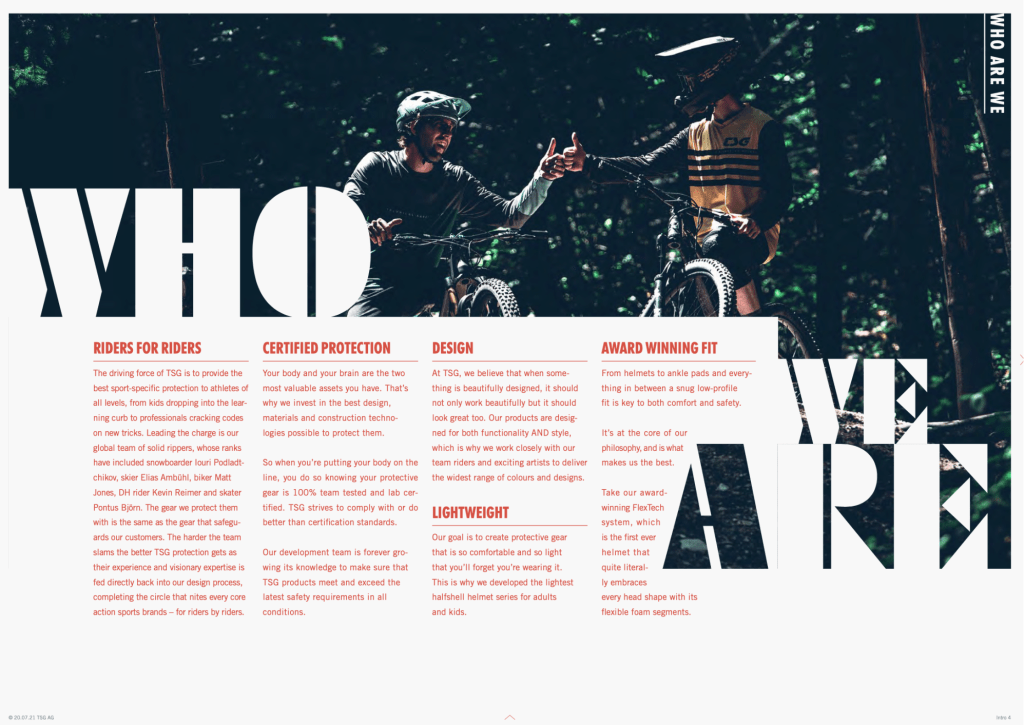 TSG is the market leader in protective gear for action sports, and I am proud to count them as a longstanding client.